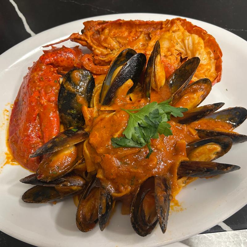 Home made, stuffed w/ crab & shrimp, in a lobster bisque cognac sauce