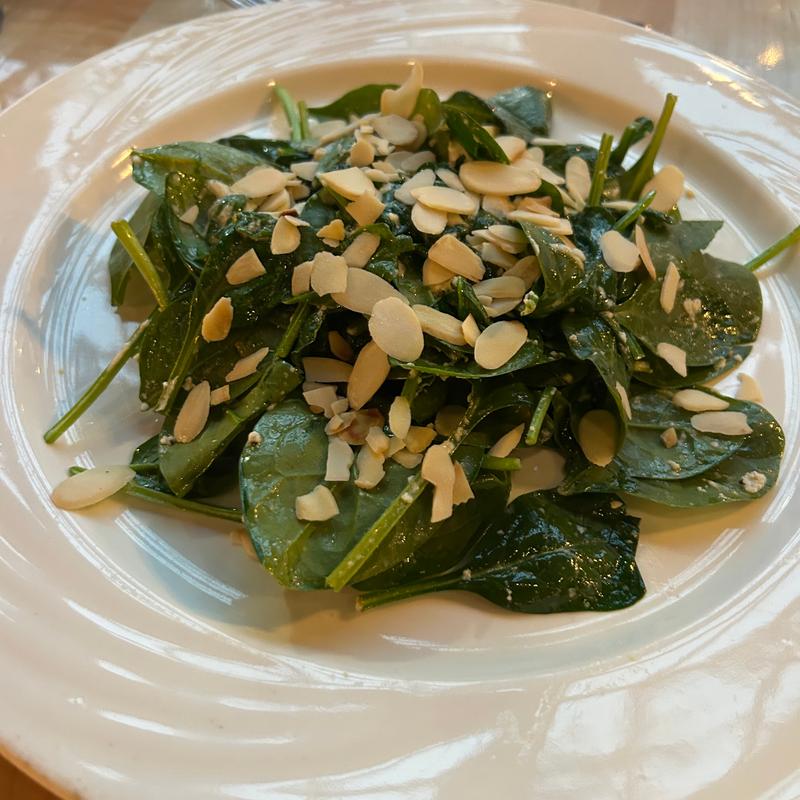 Sautéed veal scaloppini in wild Italian mushroom sauce w/ sauteed spinach