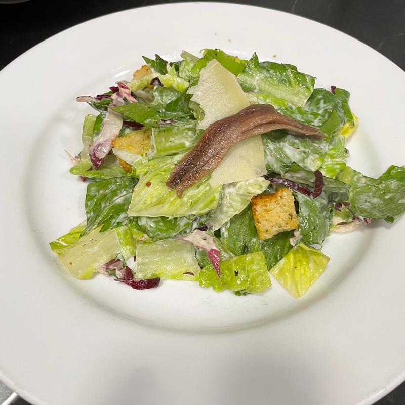 Lettuce romaine, light mustard dressing, anchovies & shaved parmesan